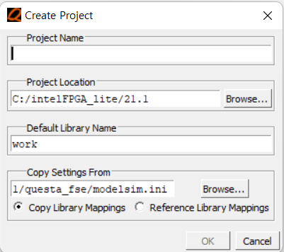 이창에서 본인이 설정한 모듈의 이름과 동일하게 파일이름을 작성한다. (다르면 컴파일 오류) 언어역시 베릴로그로 변경에서 확인클릭