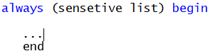 begin과 end는 언어사용에서 괄호라고 생각하면 이해하기 쉬울 것이다. 특히 always 블록에는 sensetive list라는 개념이 존재하는데 이 리스트는 always문이 실행되는 list를 의미한다. 즉 이 리스트에 있는 변수들이 변화하면 always문이 동작하게 된다. 따라서 어떤 모듈을 작성할 때 이 블록이 작동되도록 하는 조건변수를 여기 적어주면 의도에 맞게 설계할 수 있다.