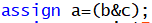위와 같이 and게이트를 구성하는 어사인 블록을 표현했다. 이 블록은 b와 c를 and 연산해서 a에 출력하라는 명령어이다. 따라서 다시 말해 b, c를 입력으로 받아 a를 출력하는 조합회로를 구성했다고 볼 수 있다. 이 블록이 툴상에서는 b와 c의 값이 변화하면 연속적으로 그 값이 a에 반영되면서 연산이 이루어지는 구조이다. 그래서 assign블락은 조합회로만 구현할 수 있다는 특징이 있다. 한 줄 만에 코드를 다 써야 한다는 특징이 있고 구조가 복잡해질경우 코드가 길어진다는 단점이 있다.